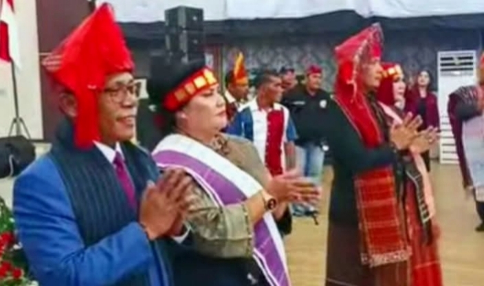 TAPTENG – Bupati Tapteng Masinton Pasaribu Diupa upa di GOR Pandan, Sabtu (28/06/2025).