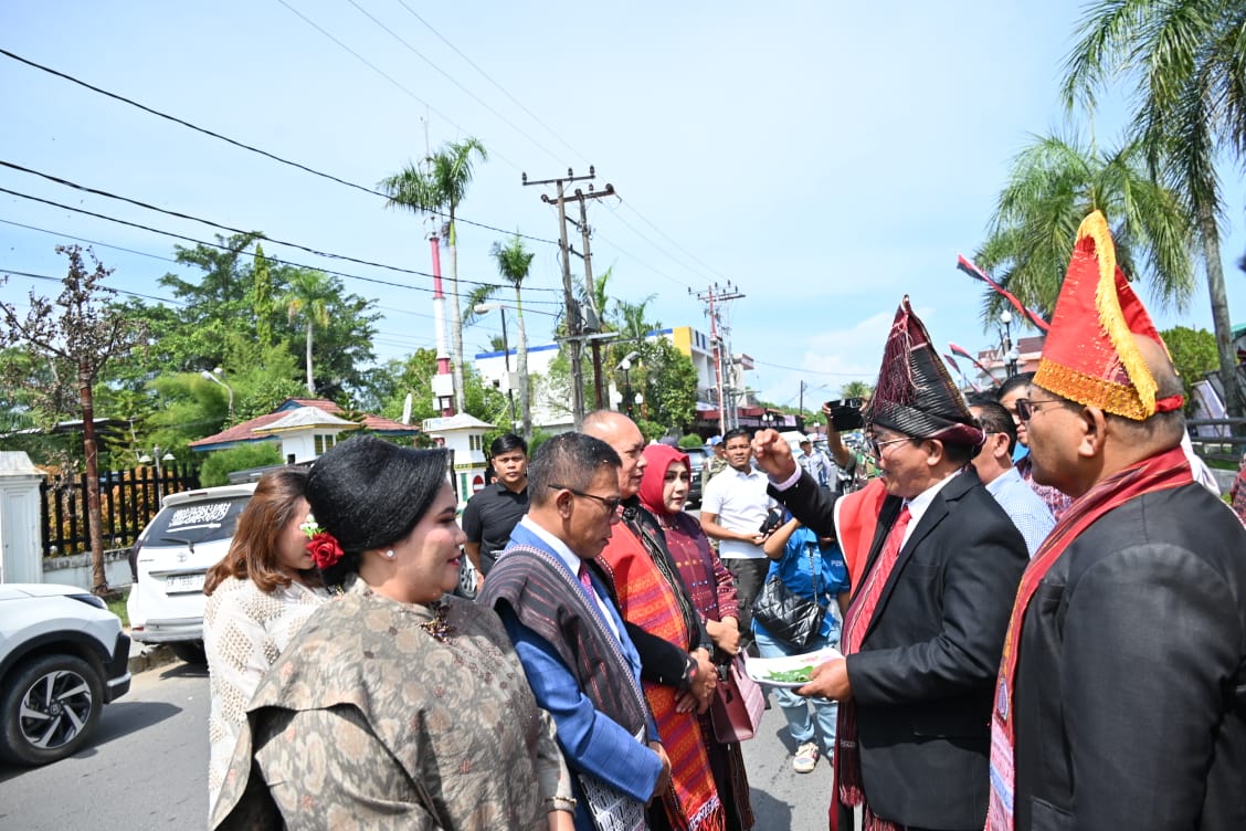 PANDAN – Pomparan Guru Tatea-Tim Budaya, Mangupa-upa Bupati Masinton Pasaribu bersama Wakil Bupati Tapteng Mahmud Efendi di pesta syukuran yang digelar di Gedung Serbaguna Pandan, Sabtu (28/06/2025).