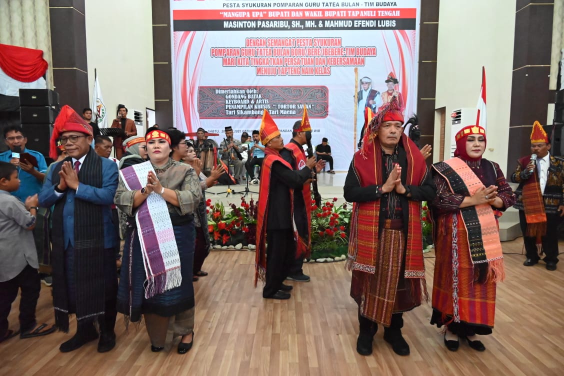Bupati Masinton mengapresiasi panitia Pomparan Guru Tatea Bulan-Tim Budaya, juga Sekretaris Daerah Tapteng, dan Pimpinan OPD, kepada Pendeta, Ustad, para rohaniwan, serta undangan dari kecamatan dan desa.